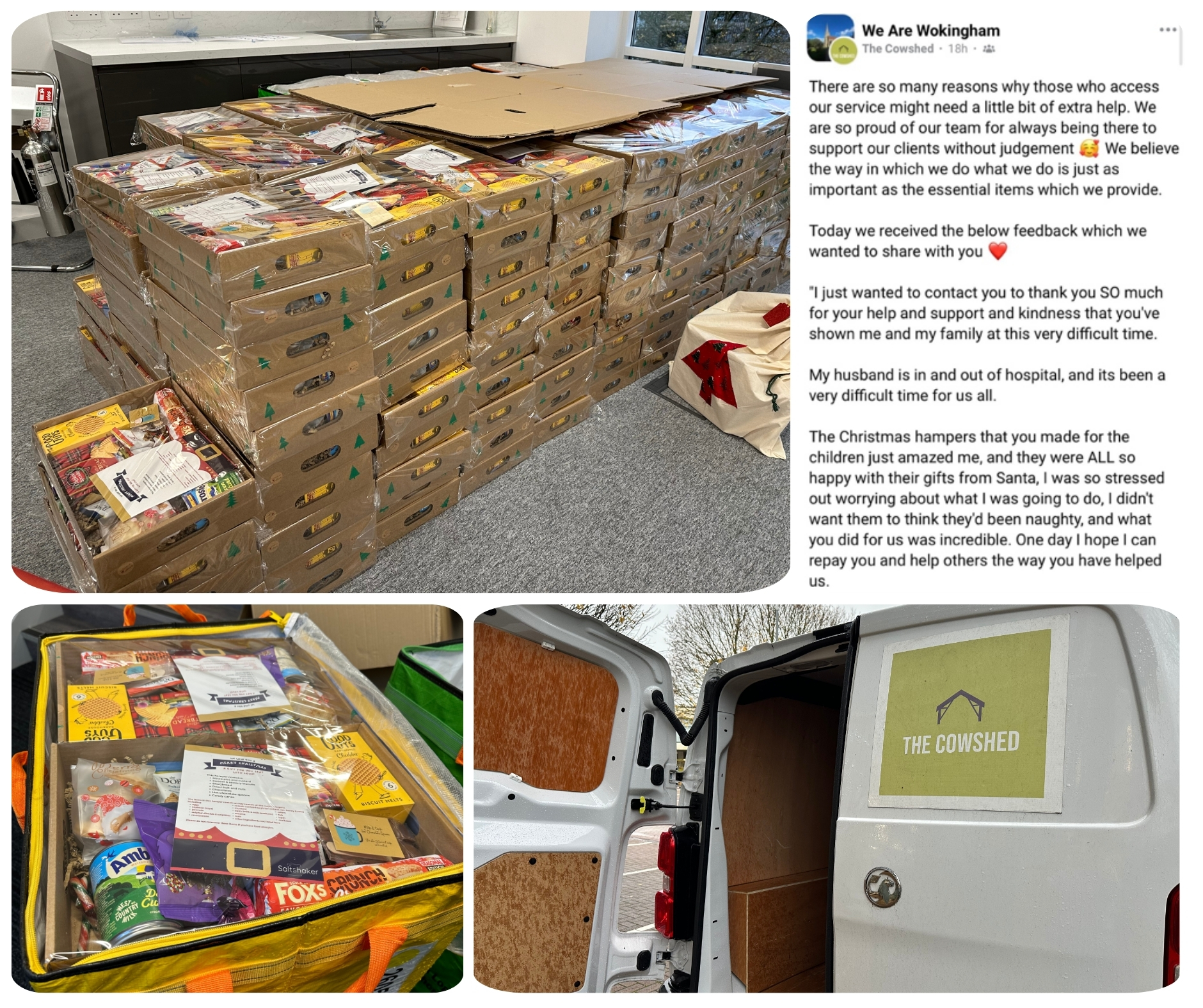 The hampers will be delivered to families by The Cowshed alongside their Christmas Present appeal which in 2024 supported more than 2,500 children. Read The Cowshed’s 2024 Christmas Project Report