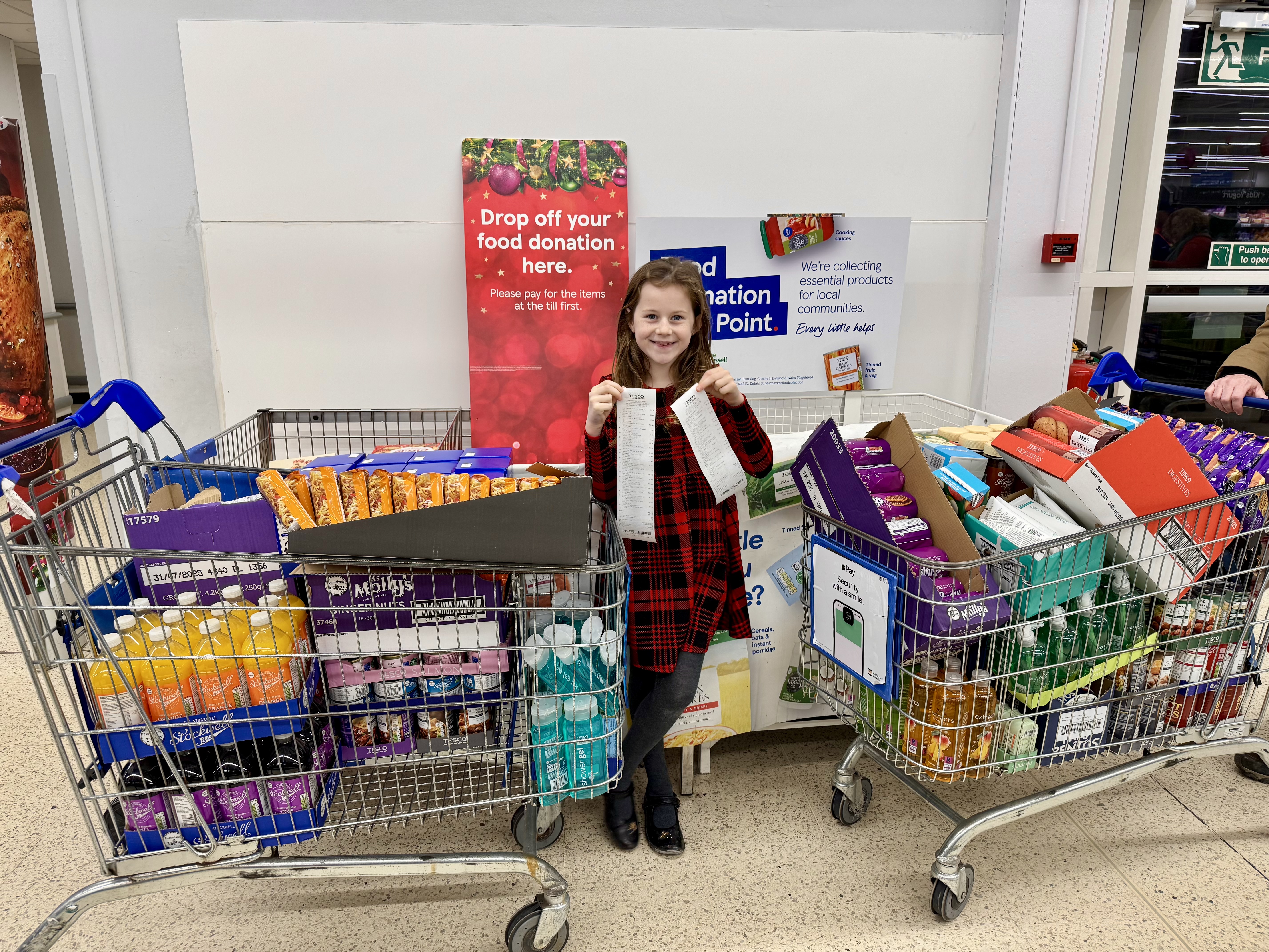 Since the age of 6, Saphia has raised over £1,800, filling 12 supermarket trolleys with nutritious food, drinks, and essential hygiene products. She handpicks every single item herself, always thinking about what will provide the most nutrition for families who are struggling.