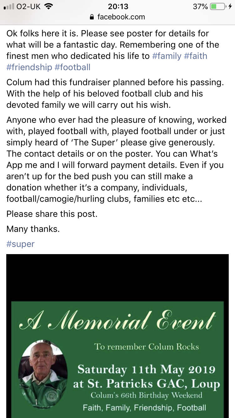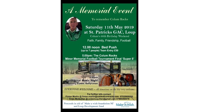 I've raised £1000 to donations will go to Make A Wish Foundation and St.Patrick’s GAC Loup