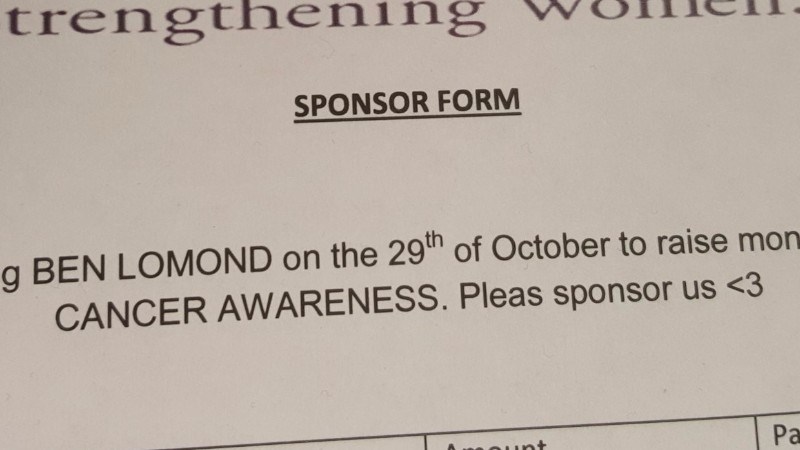 I am going to climb ben lomond on 29th of October 2017 for breast cancer awareness this is a charity very close to my heart and any donation would be very appreciated for an amazing cause