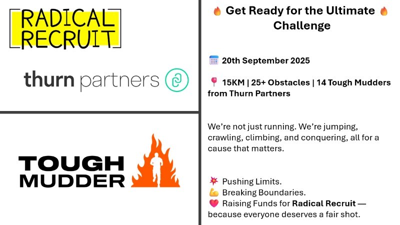 As a company, we’re taking on the London South Tough Mudder to raise funds for Radical Recruit. Together, we're committed to making a meaningful impact and would love your support!