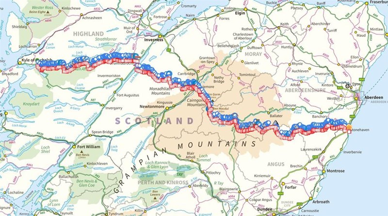 Our route is 320km (199 miles) through the Scottish highlands, with a challenging 18 Munros and Munro Tops (a summit above 910m/3,000ft) including the 2nd highest mountain in Britain, Ben Macdui, which we will be carrying crampons and ice axes for. Overall, we will be ascending a total of 12,300m (40,000ft) along the way.