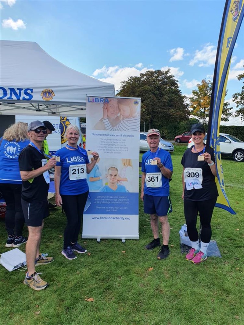 This is my third run to support LIBRA and on this occasion, I am joined by Rosie, Richard, Mark and Alex. We all have Lions connections and I am the Childhood Cancer Projects Officer for the South-East district. We have all been training very hard and are hoping that the weather will be kind to us on the day. I ran the race last year and enjoyed running along the country paths. I am looking forward to running as a team. In the photo you can just about see me on the right of the photo with the baseball cap.