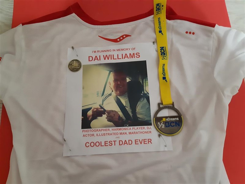 My dad, Dai Williams, ran numerous marathons when I was a kid, including the London Marathon and one just outside Paris, and it's only now I appreciate what a massive achievement that was. I started running myself a few years ago because I wanted to do something like this as a way of coming to terms with his death and of trying to create something positive from it. I'm still a way off from running a full marathon, but it would make me really proud to run the Barcelona Half in his memory, and I know he'd approve of the charity I am running for, Huggard.