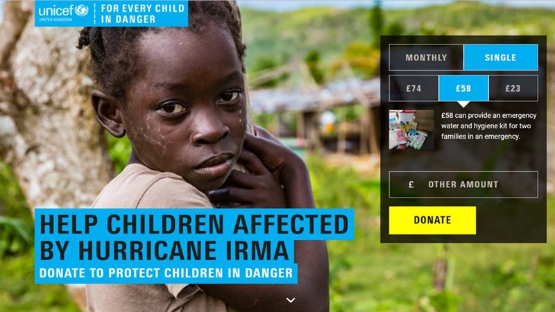 Donations will go straight to UNICEF's Hurricane Irma relief fund, helping support families most in need.