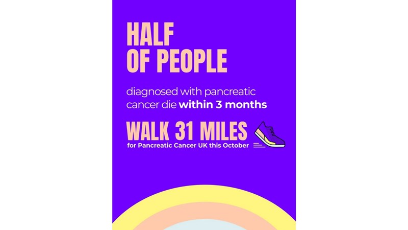 I'm aiming to walk 31 miles in a day in October to transform the future of pancreatic cancer in honour of my Mum who has been recently diagnosed. 👟Right now, half of people with pancreatic cancer die within three months of diagnosis. Families are left with only hope to hold onto. They need more. So, we do more.Thanks to kind supporters like you there is hope! 💜By donating to my challenge, you're making support available for people now and funding world-leading research to find that breakthrough in new treatments which is so desperately needed. Together, we will bring more than hope to people affected by pancreatic cancer. 💜Thank you so much for your support! 🙏