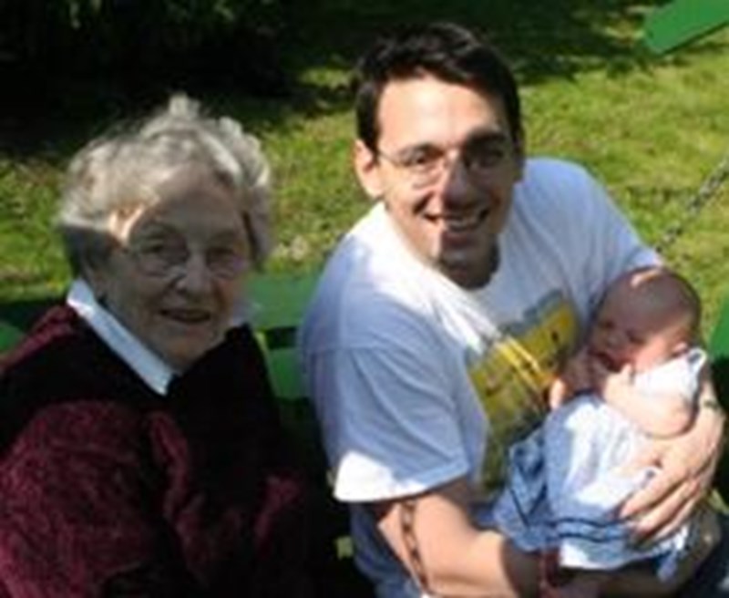 My grandmother, Mary Bertram, passed away in December after a long and exhausting fight against Alzheimer's. She had a wicked sense of humour and a mischievous smile. This picture is of her, me, and my niece Molly - Mary's first great-grandchild. We'll all miss her.