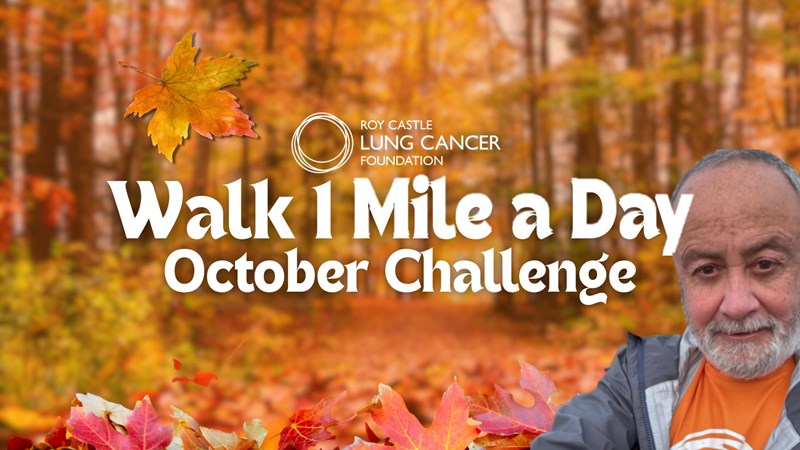 Having been diagnosed with Stage 3, Small Cell Lung Cancer in February with the added bonus of progressive emphysema, I’m grateful to be in the position to take part in the Walk One Mile a Day challenge throughout October to raise funds for lung cancer support and research.