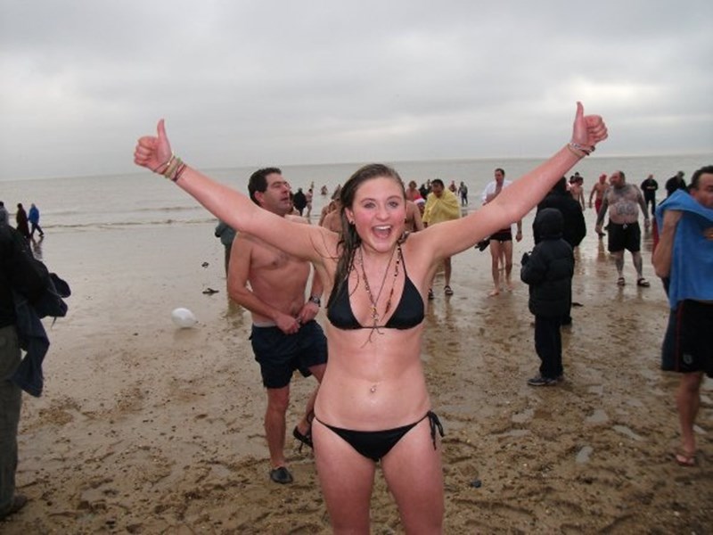 Christmas day dip on Clacton beach · 25 December 2010