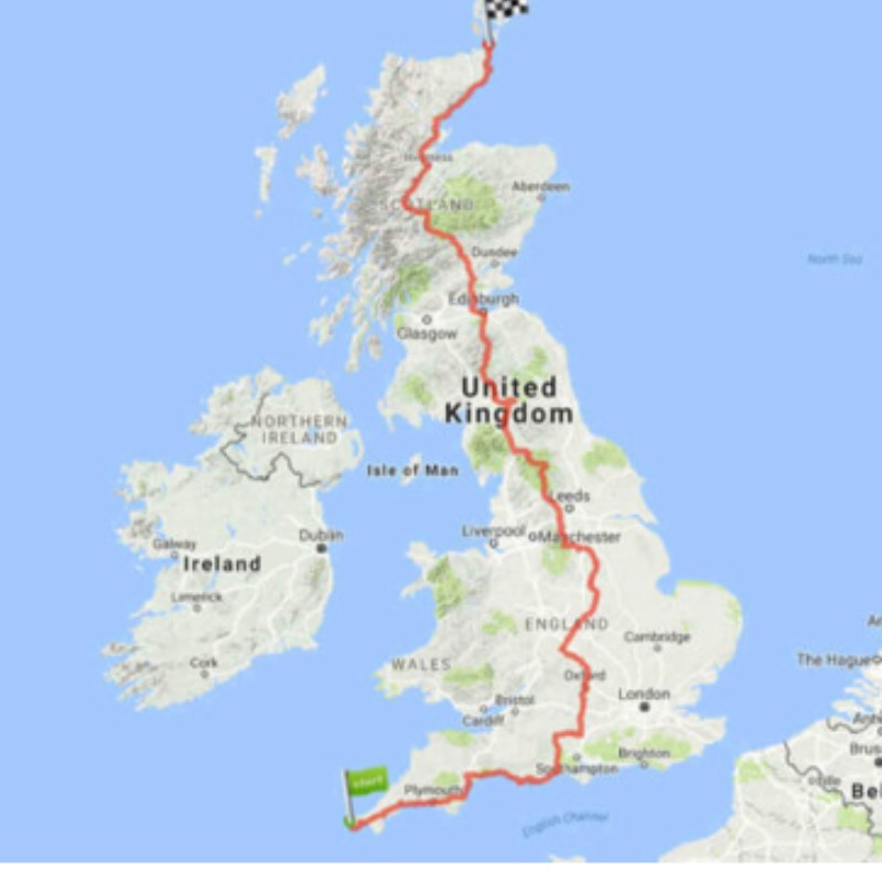 We are challenging ourselves to walk, bike, or run 1083 miles before the end of the year which is equivalent to the distance between Lands end and John O' Groats.
