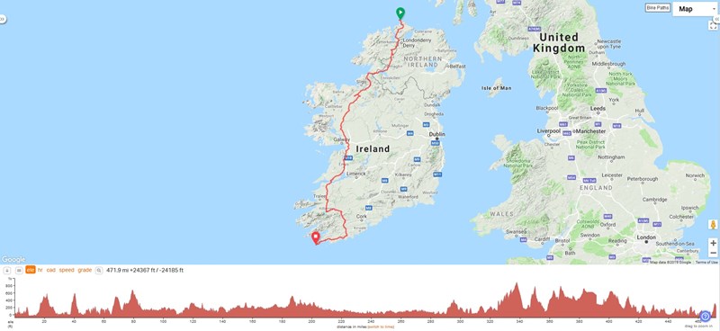 It is therefore very appropriate being Irish to take on this challenge as opposed to the bigger one of Lands End to John. O'Groats.
