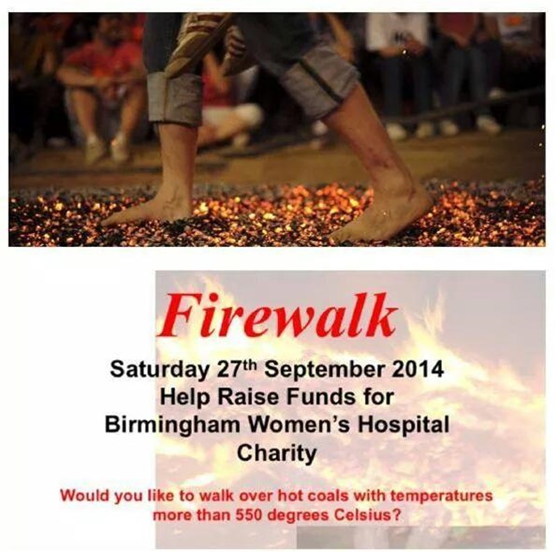 - On the 27th September me my sister and my manager from work will be doing a FIREWALK, across hot coals above 550 degrees!
