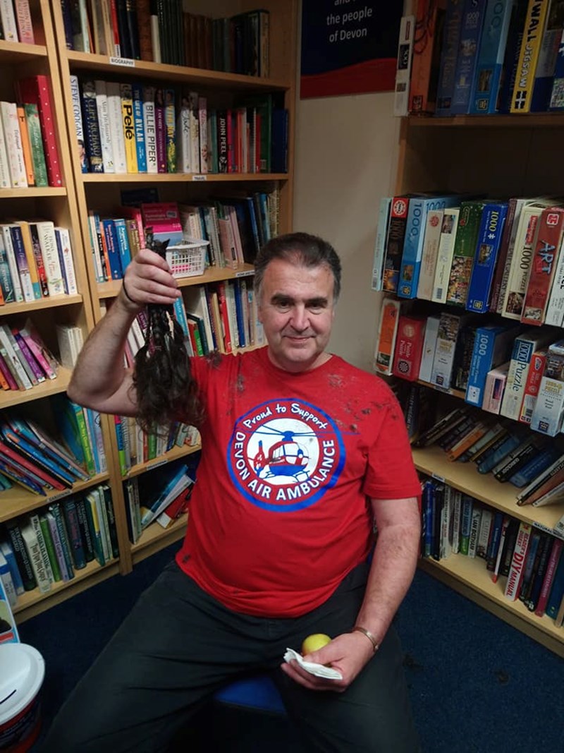 good wishes – now trying to give something back, volunteering at Devon Air Ambulance Honiton shop and getting three years of hair cut off (thanks to Beth Hibbett from Pride Hair Studio in Newton Poppleford for doing the honours) sponsored for DAA …. watch this space – 3pm 30th September.