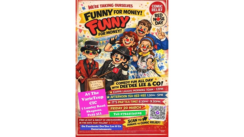 Dee'Dee Lee and Co (that is my family Malcolm, Penney, Valentino and Myself), will be out and about this year again on our Crazy Red Nose tour about Lincolnshire and behond, this will be our 3rd very successful year... we will be starting at the with a full day of family fun at our Community Hub in Skegnees called the VarieTcup CIC. It starts with comedy capers with Cuppa Laughs morning: 10am till 12pm, Afternoon Tee-Hee-Hee at 1.30pm till 5pm, then a Par'Tea Time (comedy party fun and games) 6.30pm till 9.30pm. We will then be off on our comedy musical performances around Lincolnshire and behond visiting venues, care home, community centers, shops, town centers etc...wherever Red nose comedy is needed. Of course it wouldn't be Our Crazy Tour without a special appearance from Charlie Chaplin's little Tramp and all his other Comedy, colourful, musical friends performing. If you would like us to make a special appearance please let us know.