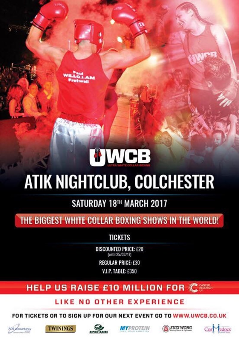 I am currently in training for a white collar boxing fight taking place in Atik Nightclub, Colchester on the 18th March. We have all been affected by cancer at some stage in our lives. Nearly two years ago my friend Jason died tragically far too young from pancreatic cancer. We were due to go to watch Froch vs Groves 2 but he was too unwell. I'm sure he'd be laughing at me doing this now!!