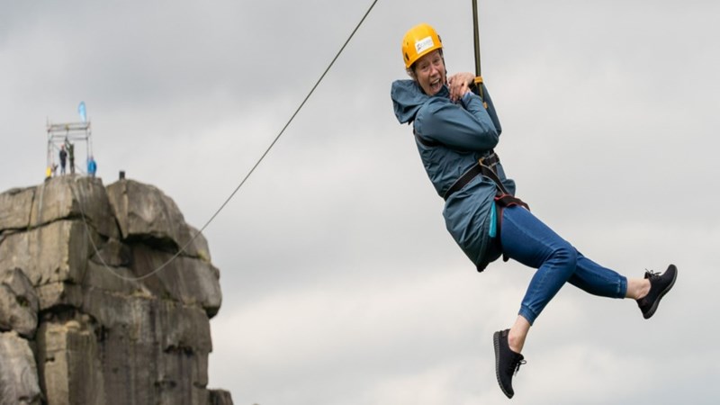 I'm going to Zip slide from the top of the Cow, at the Cow and Calf rocks above Ilkley, to help support Sue Ryder's expert, compassionate care. First I'll walk to the top of the iconic cow rock and then jump from it, sliding 270m at speeds of up to 35 miles per hour. The event is strictly for Sue Ryder and is in Ilkley West Yorkshire.