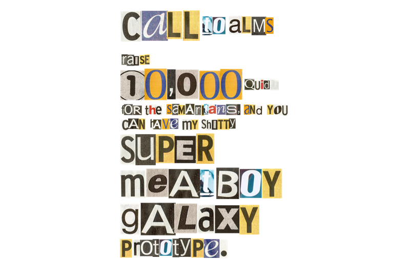 Ransoming the Super Meat Boy Galaxy prototype for Samaritans because what the hell else is it good for?