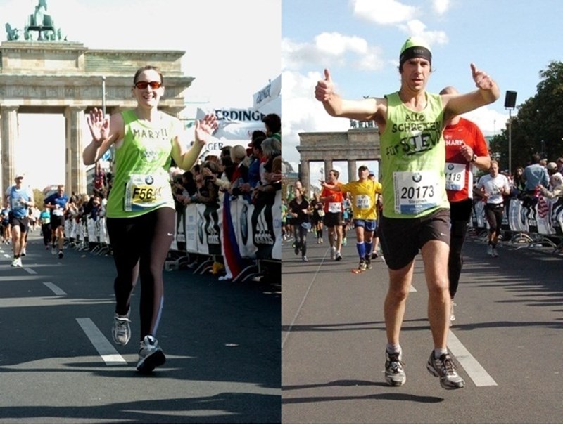 30.09.12 UPDATE: Berlin Marathon completed in 4hr09:38 (Stephen M-H) and 4hr16:19 (Mary M-H). Amazing!