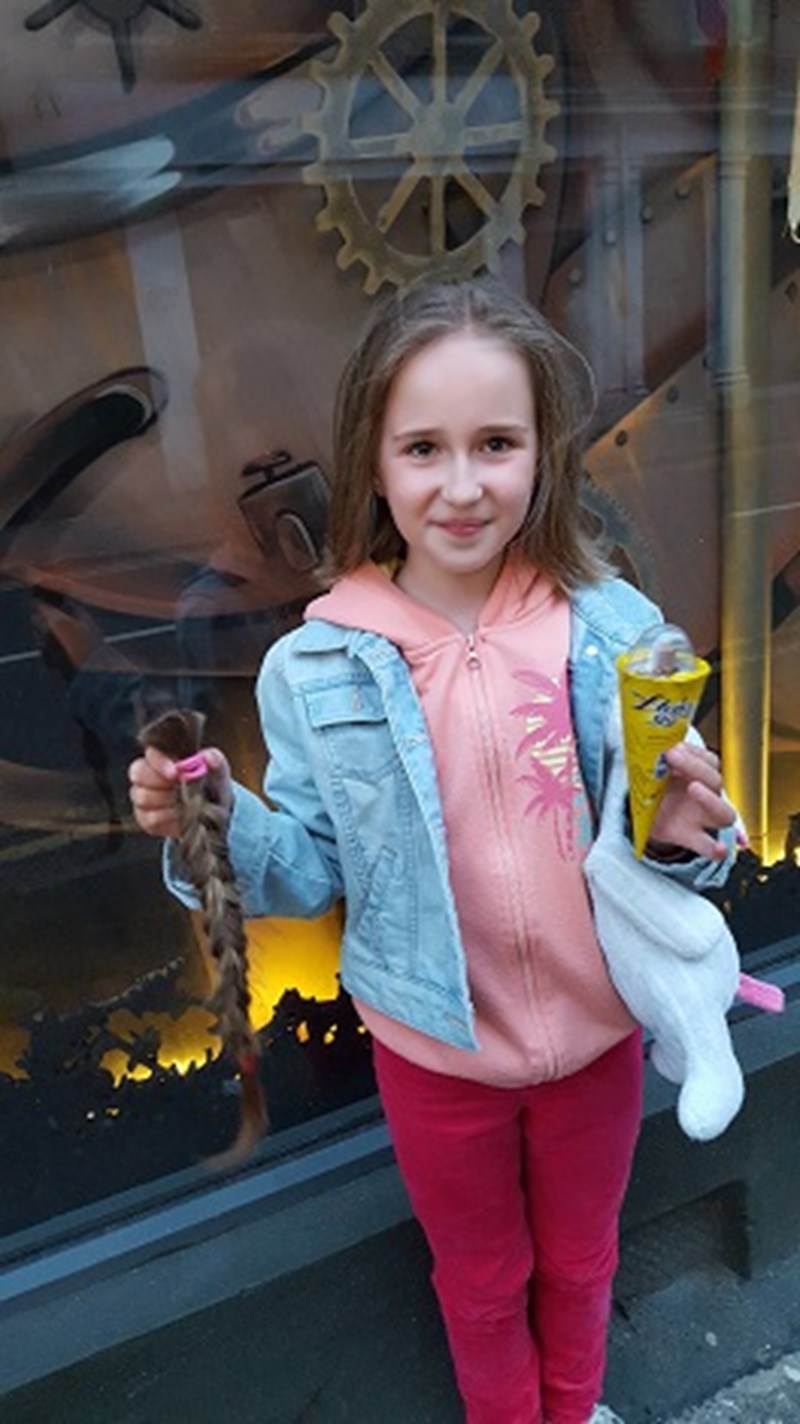 I'm 9 years old and I cut 40cm of my plait. I did it because I want to give joy to other children, I want to help fulfill their dreams.