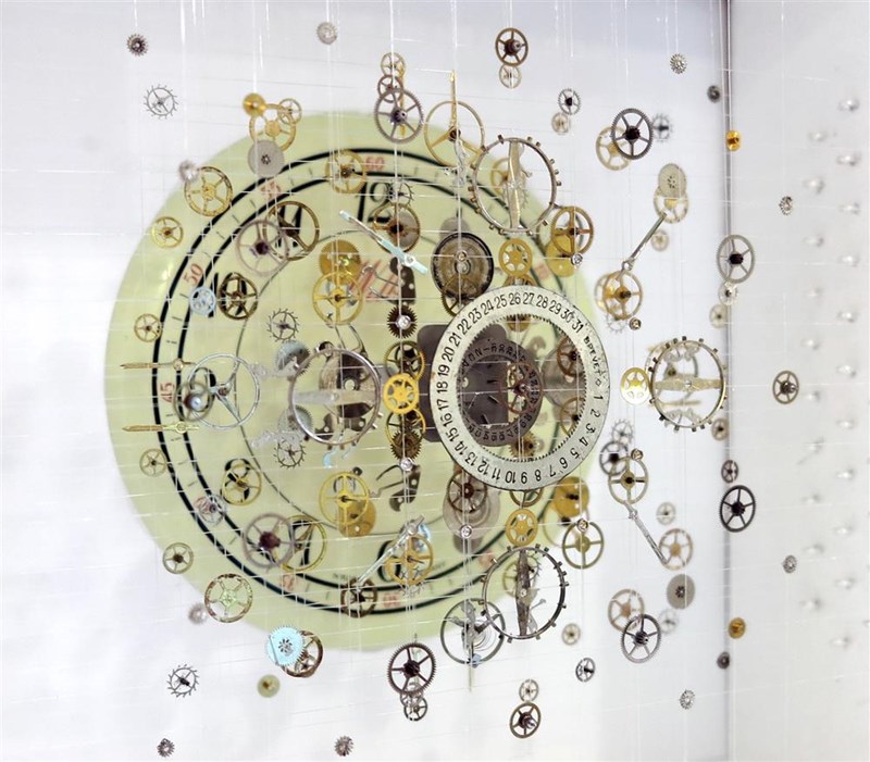 A few weeks ago, I stumbled across Anna Masters' Instagram account (@annamastersart) linked from another #watchnerd's post. Anna is a mixed media and installation artist, whose work examines the transformational qualities of time. Although she mainly creates larger site-specific installations, she had previously made smaller 3D pieces based on watch and clock parts, suspended in space.