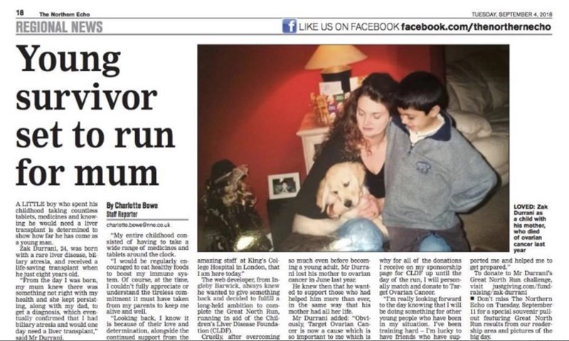 Zak Durrani is raising money for Target Ovarian Cancer