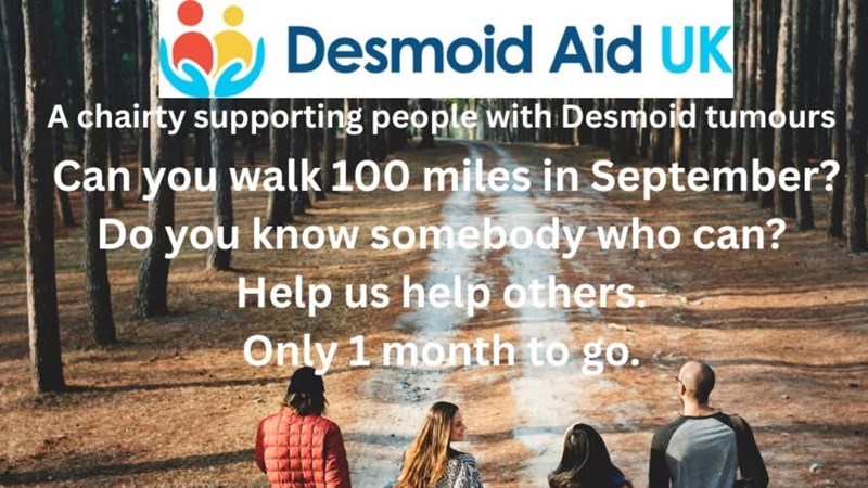 This September, I’m taking on the challenge of walking 100 miles to raise awareness and funds for Desmoid Aid UK – a charity that’s become incredibly close to my heart since being diagnosed with a desmoid tumour.