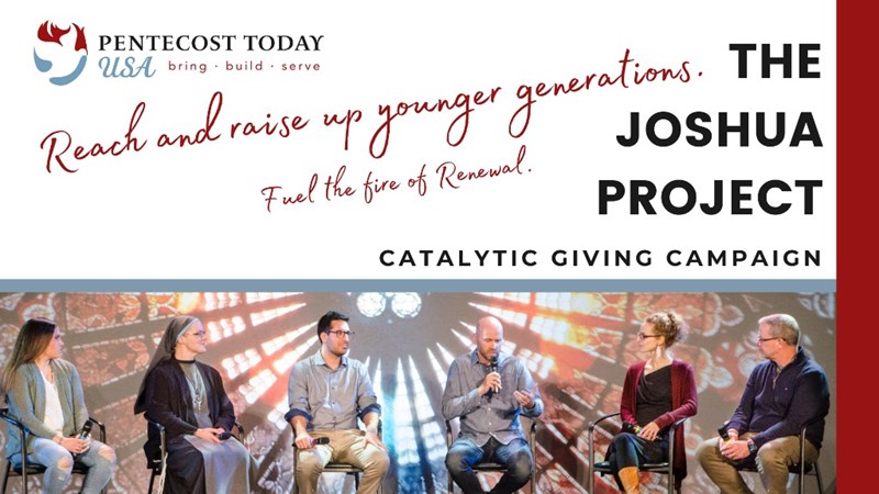 The Joshua Project is a catalytic giving campaign that will support the work of Pentecost Today USA to build tools, resources, and programs for Renewal Leaders as they work to reach younger generations and to raise up, connect, and equip young Renewal Leaders to BRING baptism in the Holy Spirit to the whole Church, BUILD unity in the Body of Christ, and SERVE the physically and spiritually poor.