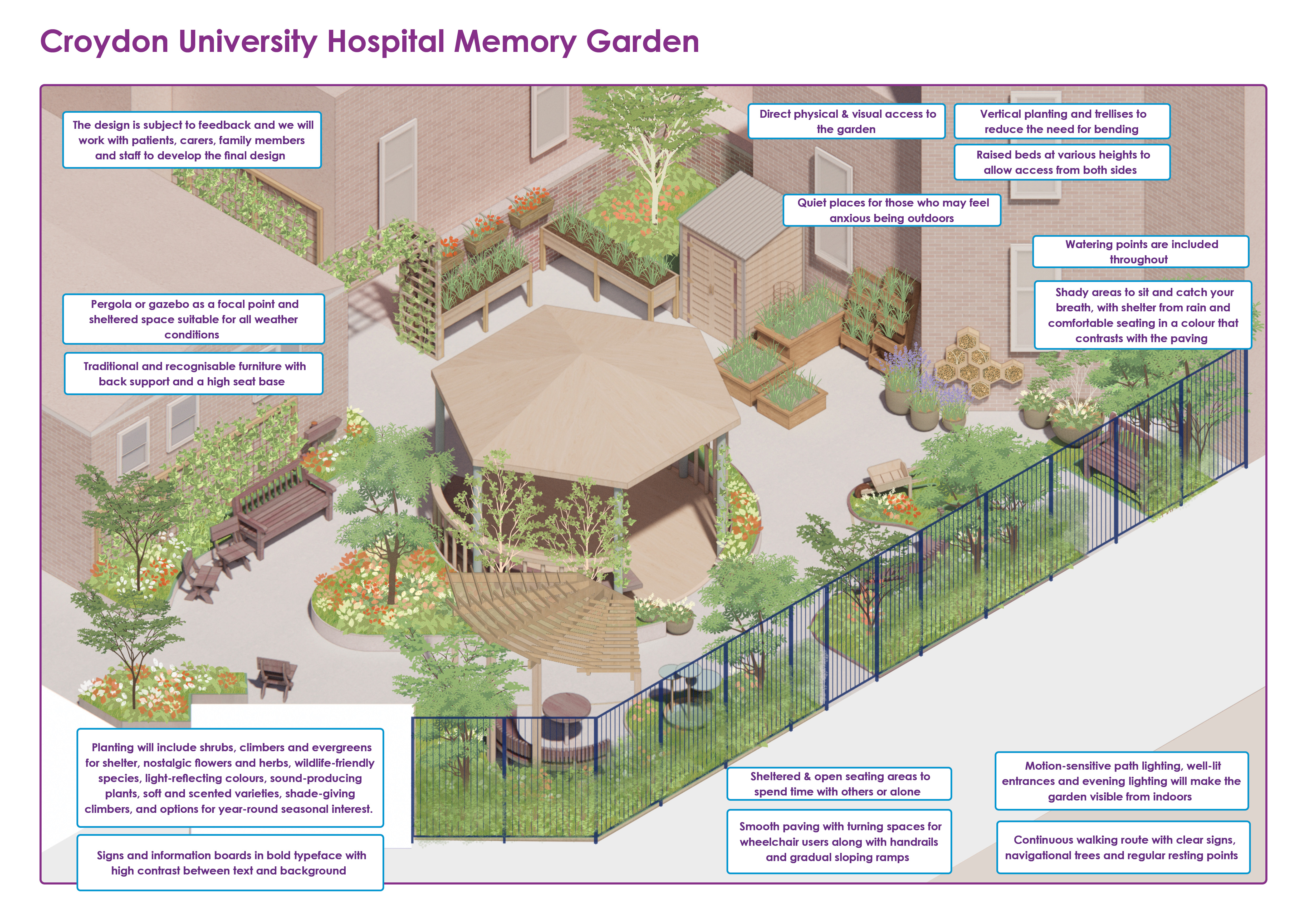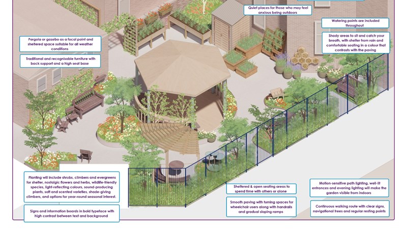 As well as supporting physical recovery, the garden will offers a therapeutic environment for patients, helping to reduce stress and improve their overall wellbeing, as well as offering a welcoming, calming space for families, allowing them to connect with loved ones, recount old memories and reminisce in a serene and supportive non-clinical space.