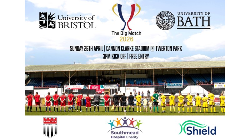 Join us on Sunday 26th April at Bath City’s Cannon Clarke Stadium (Twerton Park) for a 3PM kick-off, as the University of Bristol and University of Bath go head-to-head once again in what promises to be an absolute thriller.