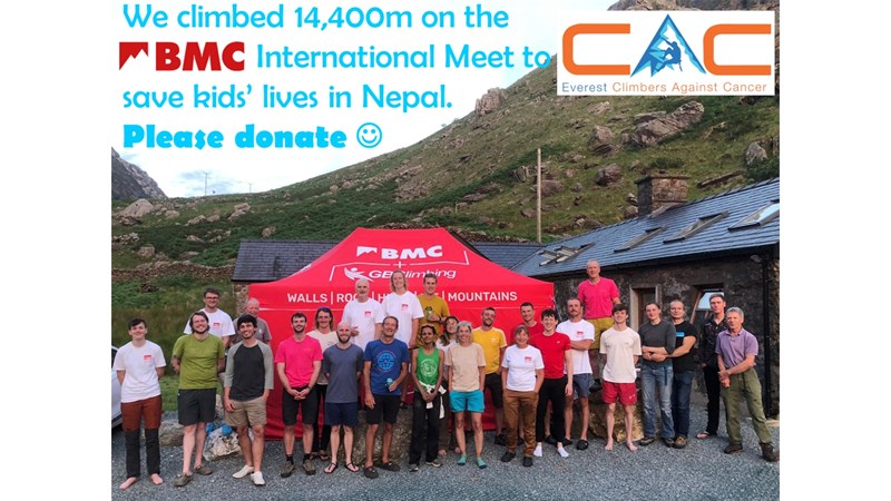 More than 40 climbers from Ireland, Scotland, Wales and England are gathered in North Wales for the BMC Summer Climbing Meet - we're hoping to climb the cumulative 8,848m height of Everest fundraising to train local cancer doctors to help save children's lives in Nepal.