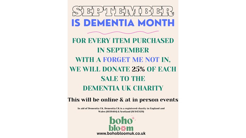 Dementia affects so many people and so I have decided that for the whole month of September, which is Dementia month, I will donate 25% of each sale of jewellery that has a Forget-Me-Not flower included in.