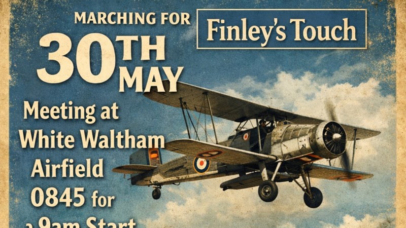 'Marching for Finley' is a fundraising initiative created by Ant 'Bomber' Brentnall aimed at supporting Finley's Touch, a charity that helps children with cancer.
