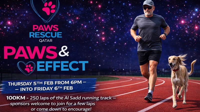 PAWS rescue is an organisation very dear to my heart. We have worked with them to rescue, rehabilitate and rehome dozens of animals over the years we have been in Qatar. The thought that PAWS might cease to exist cannot compute. I will do whatever it takes to help them survive and I very much hope that you will sponsor me in my ridiculous challenge to run/jog/walk or crawl 100km on the 5th/6th February at Al Saad Athletics track.