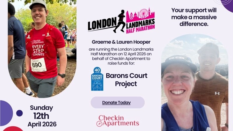 Proudly sponsored by Checkin Apartments, they’re experienced, passionate runners and excited to represent the wider Barons Court Project charity team while raising vital funds. Any donation, big or small, will make a real difference, and we’re hugely grateful for your support.