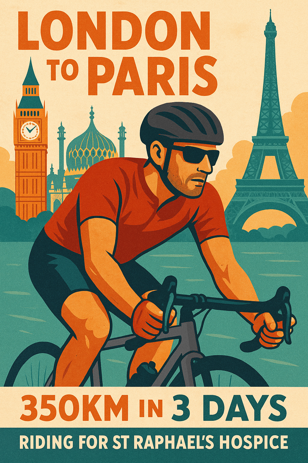 After hitting the seafront, I’ll be continuing solo to Paris, covering 350km over 3 days, and for a bit of extra motivation to roll down the Champs-Élysées, I’m raising money for St Raphael’s Hospice.