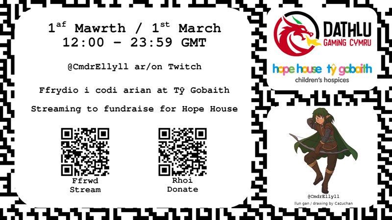 As a collective, Welsh streamers will fundraise on February 28th and March 1st (St David's Day) to celebrate being Welsh and supporting Welsh children. Thank you for your support. Diolch.