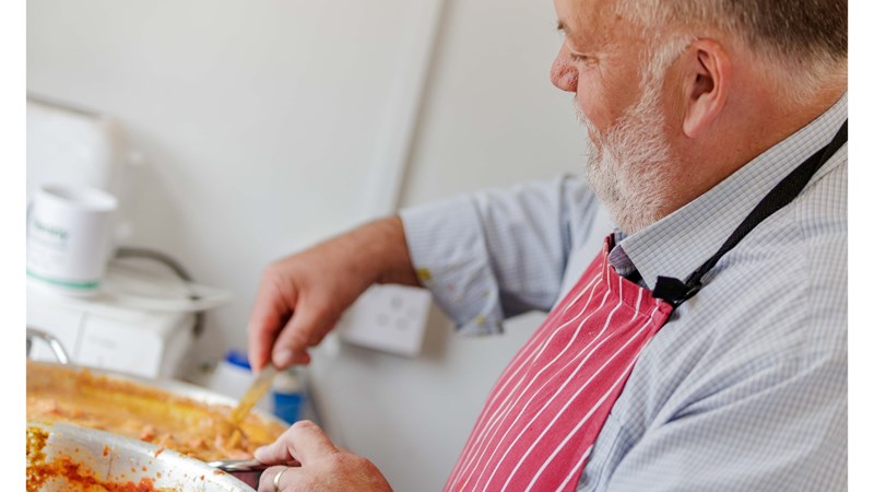 ‘’The main reason I have been doing this is because it gets people to talk, once people start to smell the onions and garlic cooking, they pop their heads in the canteen to see what’s going on. A lot of them can’t believe what is happening as this sort of event has never been done before. I think it is slowly breaking down the barriers of communication and getting people to talk. Nearly everyone likes curry, so Curry and Chat seems to work.’’