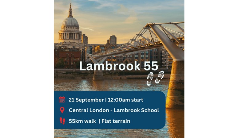 In support of The Lambrook Foundation, members of the Lambrook Community will be walking from London to Lambrook.