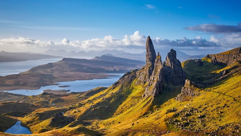 This unparalleled scramble circuit offers a strenuous traverse over the Trotternish Ridge, one of Scotland's most dramatic geological features on the Isle of Skye.