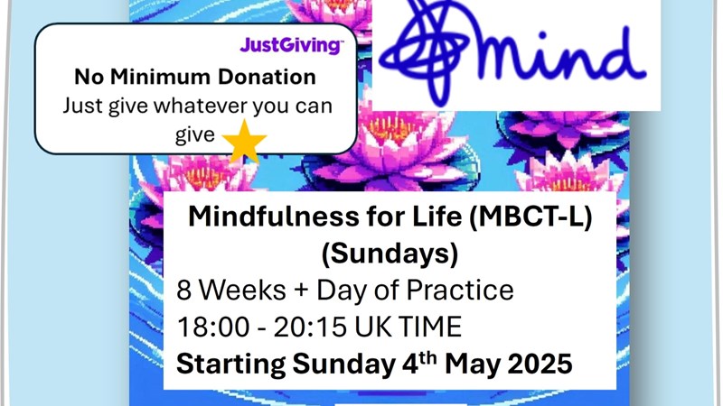 Please feel free to donate to Mind in support of Dean and/or Purple Lotus, and/or apply for a place on the course.