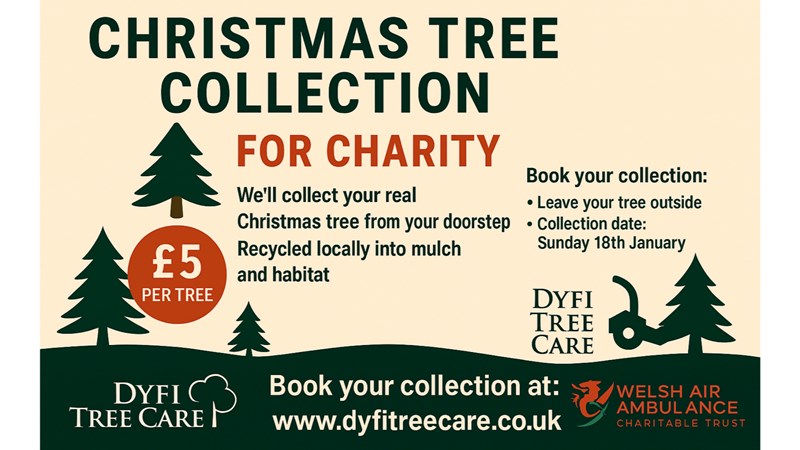 Dyfi Tree Care will collect and dispose of your old christmas tree responsibly and in an environmentally friendly way. We chip them up and give them to allotments and gardens as mulch.