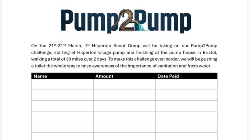 On the 21st-22nd March, 1st Hilperton Scout Group will be taking on our pump2pump challenge, starting at Hilperton village pump and finishing at the pump house in Bristol, walking a total of 30 miles over 2 days. To make this challenge even harder, we will be pushing a toilet the whole way to raise awareness of the importance of sanitation and fresh water.