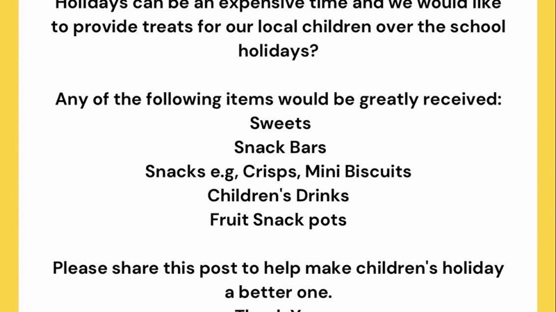 By donating, you’ll be helping to provide families with those small but meaningful extras that make Easter feel special — from sweets, snack bars, childrens drinks, fruit snack pots and Easter goodies — reminding people in our community that they’re not alone.
