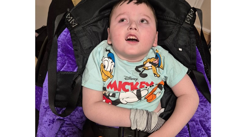 Mason never went past the newborn stage of development. He has daily seizures ranging from 5 to 15 times a day, scoliosis, dislocated hips, unable to sit up or grab items. He is fully peg-fed nil by mouth, he has recurrent chest infections, He retains urine and struggles with bowel movements. He has a sats machine, a suction machine, a nebuliser, a feeding pump and is a full-time wheelchair user. He can also mainly only see lights and is registered blind, and has what feels like endless medications.