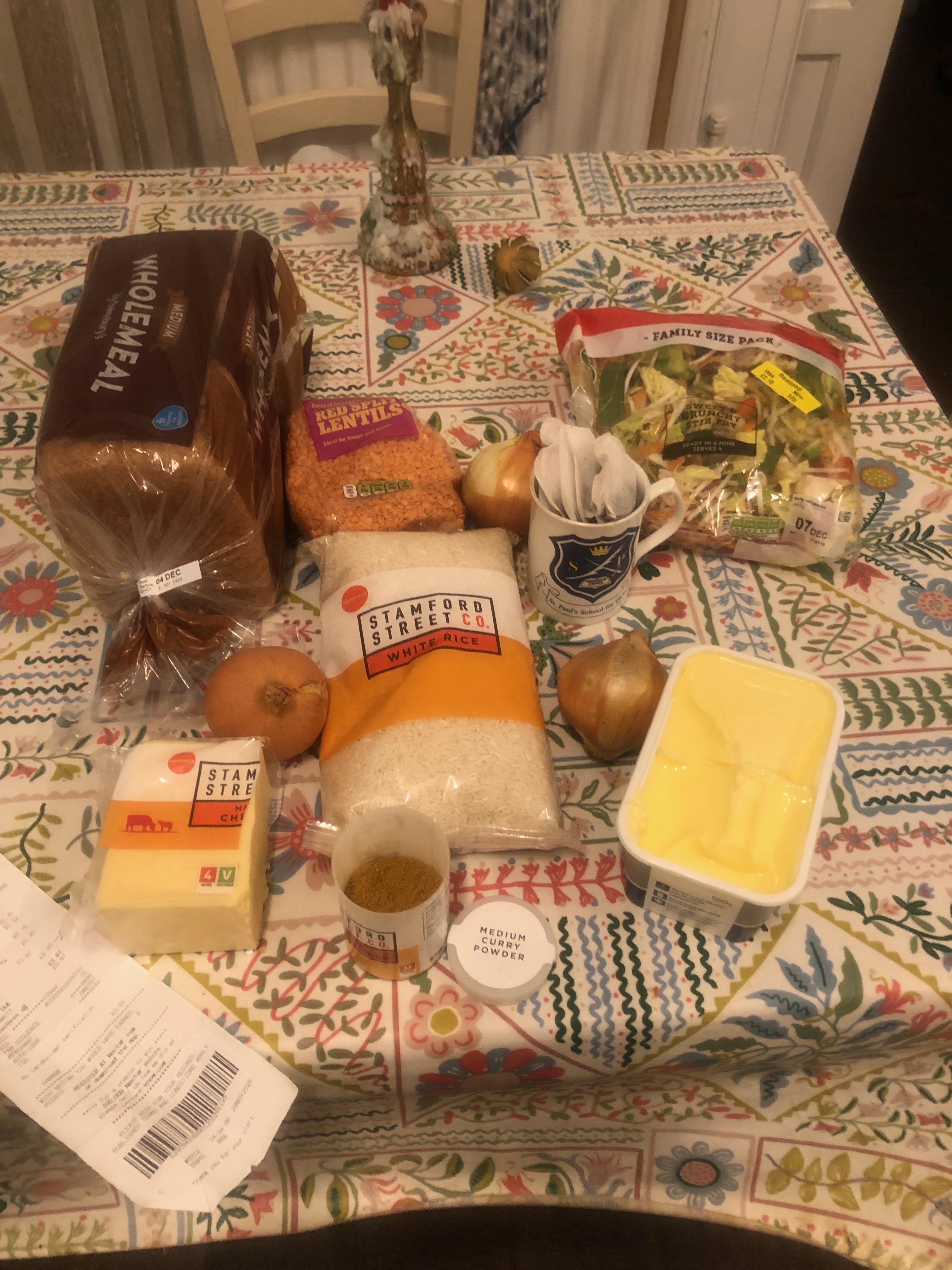 Every year the C-B's spend one week living on £1-a-day each. This year there are only TWO people in the C-B house. So ... no economies of scale. All food £2-a-day. We're not allowed to use anything from the cupboards except salt and pepper. No one's allowed to slip us a biscuit or similar. We've got lentils. We've got white rice. We've got marge. We've got some tea bags. We're off.