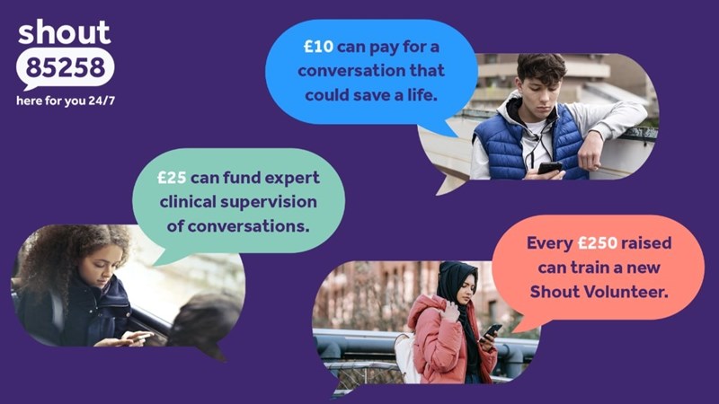 £250 can train a new Shout Volunteer to take life-saving conversations.