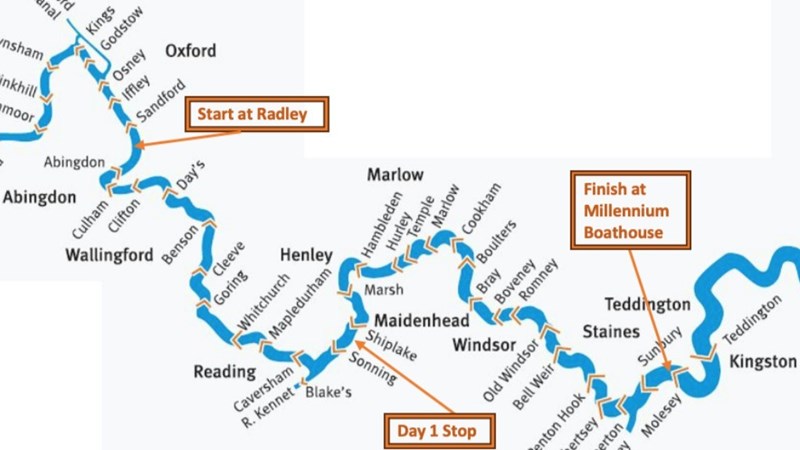 Over the weekend of 16th-17th September, pupils from Hampton School and LEH School Boat Clubs, along with a number of their parents, will be rowing downstream from Radley College, near Oxford, to Millennium Boathouse, Hampton. This involves 80+ rowers in 10+ boats all rowing 80 miles and going through 28 locks on the River Thames across 2 days.