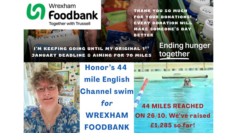 I hadn't exercised for a while and started swimming early June to help aid my recovery. Little by little, I got much further along than I thought I would, which I'm so grateful for, so have decided to do a fundraiser for WREXHAM FOODBANK as I continue to swim.