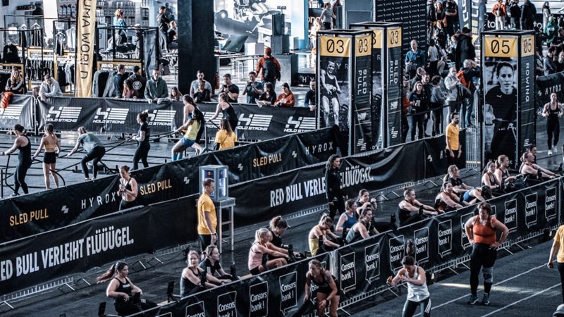 HYROX is a global fitness race combining running with functional workouts. Eight rounds of 1KM runs followed by challenging exercises like sled pushes, burpees, rowing, and wall balls.