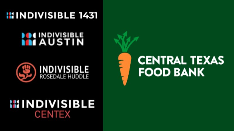 Local Indivisible chapters are coming together this holiday season to support the Central Texas Food Bank. Your contribution here helps ensure that families facing hunger have what they need, and that no one in our community is left behind. With the loss of funding for SNAP and many other important programs, these efforts are more important than ever.
